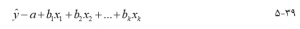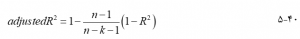 که در آن k تعداد متغیرهای مستقل، y مقدار پیش بینی شده متغیر وابسته y، و a و  {bi | i =1, 2, . . . , k} ضرایب رگرسیون تخمین زده شده از داده‌های نمونه هستند. همانند رگرسیون ساده، ضرایب رگرسیون با به حداقل رساندن مجموع مجذور باقیمانده‌ها به دست می‌آید. اینکه چگونه رگرسیون چندگانه با داده‌های نمونه تناسب دارد، با ضریب تعیین چندگانه،  اندازه گیری می‌شود، که نسبت تغییرات توضیح داده شده و تغییرات کل در y است، که از نظر مفهومی با    در رگرسیون ساده یکسان است. با این حال،  با گنجاندن متغیرهای بیشتر افزایش می‌یابد، در حالی که بهترین معادله رگرسیون چندگانه لزوماً از همه متغیرهای موجود استفاده نمی‌کند. برای رفع این نقص،  با توجه به تعداد متغیرهای مستقل و حجم نمونه به صورت زیر تنظیم می‌شود :