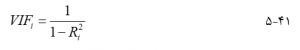 که در آن    در واقع  برای متغیر مستقل  است و  ضریب تعیین چندگانه مرتبط با رگرسیون  (به عنوان متغیر وابسته) روی همه متغیرهای مستقل دیگر است. به عنوان یک قاعده کلی، یک VIF بیشتر از 7-5  نشان دهنده چند خطی بودن بالا، نشانه ای از مشکلات بالقوه چند خطی است. جذر VIF همچنین نشان می‌دهد که خطای استاندارد چقدر بزرگ‌تر است،