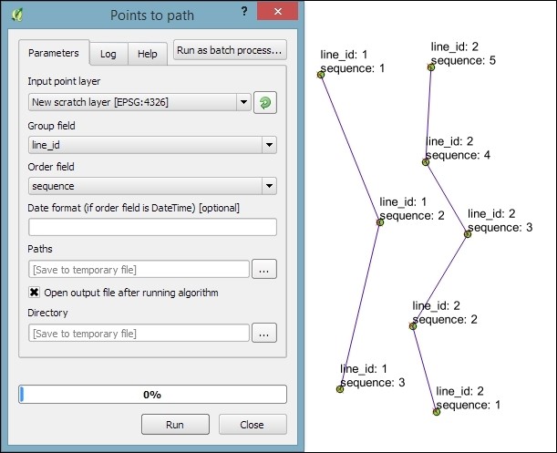 - به مسیر اشاره می کند: برای اینکه بتوان خطوطی را از نقاط ایجاد کرد، لایه نقطه به ویژگی هایی نیاز دارد که خط (فیلد گروه) و ترتیب نقاط در خط (فیلد Order) را مشخص کند، همانطور که در این تصویر نشان داده شده است: