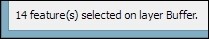 پس از بافر کردن مکانهای نقطه فرودگاه، ابزار Select by location تمام بافرهای فرودگاه را که رودخانه را قطع میکنند انتخاب میکند. در نتیجه، 14 فرودگاه از 76 فرودگاه انتخاب می شوند. این اطلاعات در قسمت اطلاعات در پایین پنجره اصلی QGIS نمایش داده می شود، همانطور که در این تصویر نشان داده شده است: