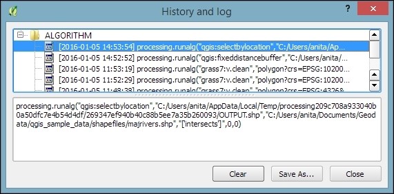 اگر فراموش کردید از کدام تنظیمات استفاده کرده اید یا باید بررسی کنید که آیا از لایه ورودی صحیح استفاده کرده اید، می توانید به پردازش | تاریخ. همانطور که در تصویر زیر نشان داده شده است، بخش ALGORITHM تمام الگوریتم هایی را که اجرا کرده ایم و همچنین تنظیمات استفاده شده را فهرست می کند: