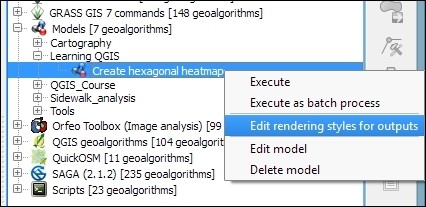 یکی دیگر از ویژگی های مفید این است که می توانیم سبک لایه ای را مشخص کنیم که باید به طور خودکار روی نتایج پردازش اعمال شود. این سبک پیش فرض را می توان با استفاده از ویرایش سبک های رندر برای خروجی ها در منوی زمینه مدل ایجاد شده در جعبه ابزار تنظیم کرد، همانطور که در تصویر زیر نشان داده شده است: