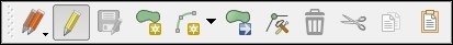 متوجه خواهید شد که نماد لایه در لیست لایه ها تغییر می کند تا روشن یا خاموش بودن ویرایش را نشان دهد. وقتی ویرایش یک لایه را روشن می کنیم، QGIS به طور خودکار ابزارهای دیجیتالی مناسب برای نوع هندسه لایه را فعال می کند.