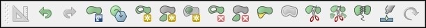 همانطور که در تصویر زیر نشان داده شده است، نوار ابزار Advanced Digitizing عملکردهای بسیار مفید Undo و Redo و همچنین ابزارهای اضافی را برای ویرایش هندسه درگیرتر ارائه می دهد: