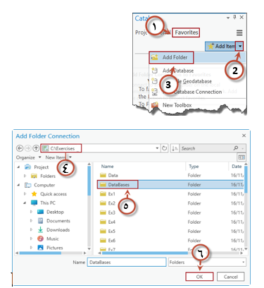 1) در کادر Catalog، برروي سربرگ Favorite کلیک کرده و در فهرست باز شونده Add Item، گزینه Add Folder را انتخاب کنید تا پنجره Add Folder Connection باز شود.