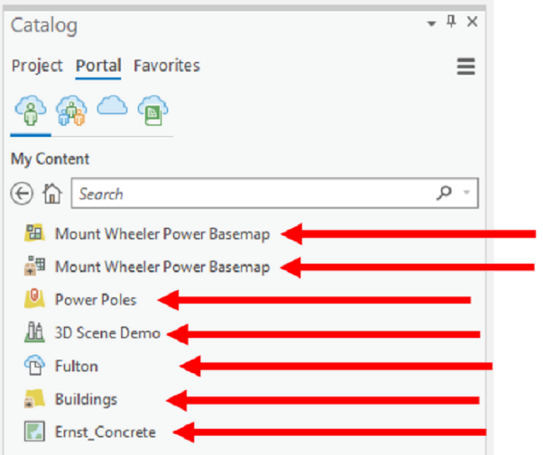 با استفاده از این دکمه می ­توان به محتوای موجود در ArcGIS Online و یا Portal forArcGIS دسترسی پیدا کردکه قبلا توسط کاربر تولید شده است. این اطلاعات می ­توانند نقشه ­های تحت وب، چشم ­اندازهای تحت وب، داشبوردها، بسته ­هاي لایه و چیزهای دیگر باشد.