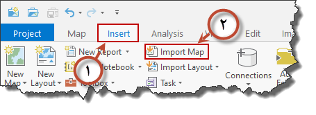 – برای اضافه کردن یک نقشه از قبل تهیه شده، کافی است در بالای روبان بر روي سربرگ Insert و در روبان، در گروه Project، بر روي ابزار Import Map کلیک کنید و سپس در پنجره Import، مسیر ذخیره نقشه از قبل تهیه شده را دنبال کنید (شکل 3-2).