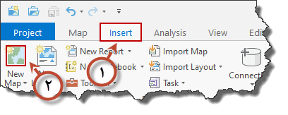 بدین منظور کافی است پس از باز کردن یک پروژه، در بالای روبان، بر روي سربرگ INSERT و در روبان، در گروه Project، بر روي دکمه New Map کلیک کنید (شکل 3-3).