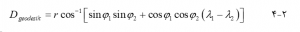 در سیستم مختصات جغرافیایی، طول کوتاهترین خط بین دو نقطه به عنوان فاصله دایره بزرگ اندازه گیری میشود. دایره بزرگ دایره ای است که روی سطح کروی زمین قرار دارد و مرکز آن با مرکز زمین منطبق است. دو نقطه دایره بزرگ را به دو قوس جدا میکند. طول قوس کوتاهتر فاصله دایره بزرگ بین نقاط است که به آن ژئودزیک نیز میگویند. این فاصله، فاصله مستقیم نیست بلکه فاصله کروی است که به صورت زیر محاسبه میشود: