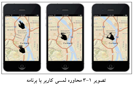 تصویر 3 محاوره با برنامه را نشان میدهد. کاربر با انگشت خود به صفحه نمایش ضربه میزند که در موبایلهای لمسی قابل استفاده است.