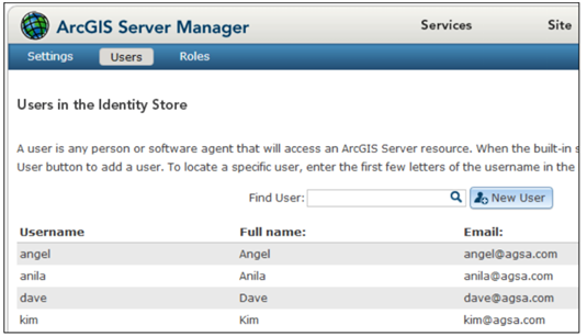 یکی از بهترین راه‌ها برای کنترل محیط ArcGIS for Server، تخصیص کاربران مختلف به وظایف و کارهای مختلف است. در تمرین زیر دو گروه کاربری ایجاد کرده‌ایم. 1- مدیران: کاربران موجود در این گروه نقش مدیر را دارند. 2- انتشاردهندگان: کاربران موجود در این گروه نقش ناشر سرویس را می‌گیرند و با استفاده از فایل Log ای که سرور ایجاد کرده، هر چیزی را بر مبنای اعتبارات کاربر به تصویر می‌کشد. در مورد فایل log که شامل گزارشات و اطلاعات مفیدی است در فصل 8 مفصلاً توضیح خواهیم داد.