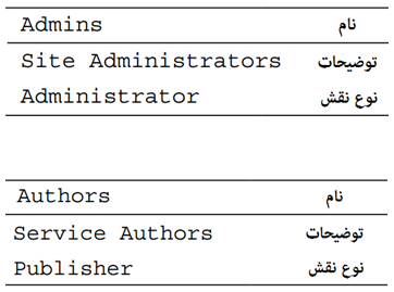 • نقش ناشر: کاربرانی با این نقش می‌توانند هر سرویسی را منتشر و حذف کنند، اما نمی‌توانند پارامترهای امنیتی را در manager تغییر دهند.