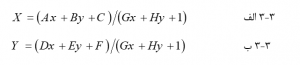 حل ضرایب تبدیل به حداقل چهار نقطه کنترل (یا چهار پیوند جابجایی) نیاز دارد. این روش عمدتاً برای تبدیل دادههای گرفته شده مستقیماً از عکسهای هوایی استفاده میشود.