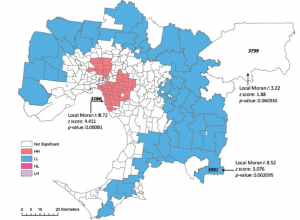 شکل 5-14 خوشه‌های مکانی جمعیت کهن در ملبورن با استفاده از I محلی موران شناسایی شد