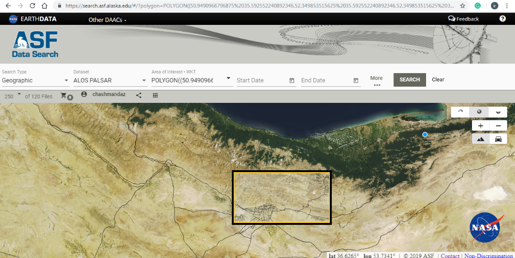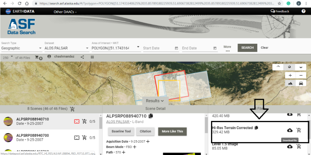 دانلود DEM از سایت search.asf.alaska.edu