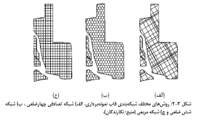 واحدهای نمونه پیوسته: در مورد داده هاي پيوسته بايستي منطقه مطالعه شبکه بندي شود به عبارتی دیگر فضاي يا قاب نمونه برداري را مي توان با شکل هاي مختلف قطعه بندي (شبکه بندي) کرده و سپس به طريق تصادفي از بين شبکه ها نمونه انتخاب می شود. در شکل زیر انواع شبکه بندي نشان داده شده است.
