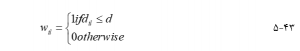 که در آن wil وزنی است که به مشاهده یا نقطه نمونه l برای تخمین معادله رگرسیون در مکان i نسبت داده می‌شود، dil نشان دهنده فاصله مکان i تا نقطه نمونه l است و d مقدار آستانه فاصله است.