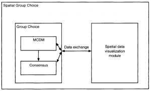 تصمیمگیری معیارها (موسوم به MCDM)، زیر ماژول رأیگیری (به نام اجماع) و یک ماژول برای تجسم فضایی، سفارشیشده از نرمافزار ArcView، تولیدشده توسط Environmental Systems Research Institute (ESRI) Inc. درنتیجه، نرمافزار یکپارچة Group Choice همراه با ArcView 2.1 «انتخاب گروه فضایی» نامیده میشود. یکپارچهسازی نرمافزار بر اساس استراتژی اتصال آزاد است (جانکوسکی 1995) .