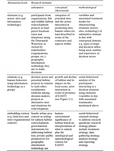 جدول 4.1 سطوح و حوزه‌های توصیف تحقیقات رفتاری اجتماعی: الف مثالی از تصمیم‌گیری مشترک در مورد توسعة مجدد زیستگاه
