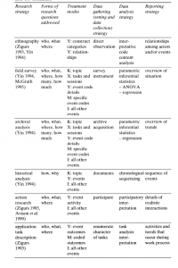 استراتژیها، پرداختن به تمام تحقیقات علمی رفتار اجتماعی، فراتر از این است محدودة این کتاب با این حال، فهرستی که ما ارائه میدهیم، در مقایسه با آنچه دیگر کتابهای درسی و تکنگاری ارائه کردهاند، سهم نسبتاً قابل توجهی دارد. یک خوانندة ناظر در این زمان، ممکن است متوجه شود که برچسبهای استراتژیهای تحقیق در ستون سمت چپ، مشابه برچسبهای اجزای مختلف یک استراتژی است؛ بهعنوان مثال، استراتژی جمعآوری داده یا استراتژی تجزیه و تحلیل داده، همانطور که در ادبیات یافت میشود. برچسبها برای استراتژی تحقیق، معمولاً از استراتژی جمعآوری داده یا استراتژی تجزیه و تحلیل دادهها هدایت میشوند، اما بهندرت ترکیبی از هر دو هستند؛ به همین دلیل است که اصطلاحات در روشهای تحقیق بسیار گیجکننده هستند و از اینرو، درک آن بدون کارآموزی دشوار است. اگرچه ما برای مرتب کردن آن با سردرگمی در اصطلاحات دست و پنجه نرم میکنیم،