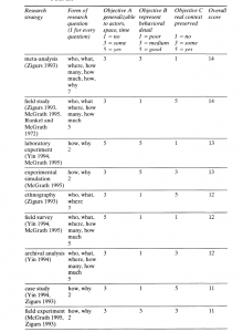 یکی از انواع ملاحظات استراتژیک در انتخاب استراتژی تحقیق. برینبرگ و مک گراث (1985)، سه ملاحظة استراتژیک را برای استراتژیهای تحقیقاتی فهرست میکنند. در اینجا، ما آنها را اهدافی مینامیم که زمینة روش شناختی یافتههای تحقیق را ایجاد میکنند: