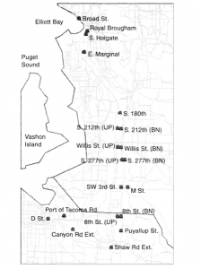 یک رویکرد سادهتر، استفاده از مرجع «نقطه» در سیستم مرجع مختصات استاندارد است؛ مانند اینکه برنامه نتواند یک توصیف فضایی سازگار با سیستم مرجع خطی توصیهشدة PSRC ارائه دهد. رویکرد مبتنی بر نقطه، بهطور کاملاً مؤثری بهعنوان مبنایی برای نمایشهای جغرافیایی که زمینة جغرافیایی را فراهم میکند، بهکار میرود. بهعنوان مثال، در یک مطالعة آزمایشی که شامل انتخاب/ ارزیابی سایت برای پروژههای تحرک بار در کریدور باربری در سیاتل- تاکوما (FAST) در منطقة مرکزی Puget Sound بود، یک گروه دانشجویی از نرمافزار پشتیبانی تصمیمگیری مبتنی بر گروه به نام «انتخاب گروه فضایی» استفاده کردند. برای ایجاد نمایشهایی جهت پشتیبانی از مذاکره در مورد انتخاب پروژه، یک نقشة پایه با پیوندهای داغ به عکسهای پروژه به شرکتکنندگان کمک کرد تا بهسرعت به مکانهای مختلف جداسازی ریل از بزرگراه هدایت شوند (شکل 6.2 را ببینید).