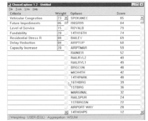 نقشهها در مورد روابط فضایی، یعنی تعامل بین مکانها، اگر یک تحلیل کامپیوتری از پتانسیل همافزایی پروژهها میتواند انجام نمیشود؛ زیرا نحوة انجام آن درک نشده است یا زمان زیادی صرف میشود؛ با این وجود، تحلیل بصری چنین پتانسیل تعاملی ممکن است مفید باشد. بدون نمایشگر چنین تحلیلهایی به دلیل حجم اطلاعاتی که باید در نظر گرفته شوند، تقریباً غیرممکن است. بهعنوان مثال، با توجه به معیاری به نام فرم شهری، نقشة امتیاز برای فرم شهری میتواند ما را به درک بهتری از تأثیر هر پروژه بر تراکم مکانهای مرکزی که در طرح جامع اتخاذ شده است، بهجای تأثیر بر ارتقای شهری هدایت کند. پراکندگی مرزهای مکانهای مرکزی در Puget Sound مرکزی قابل نمایش است و هر پروژه از نوع خاص را میتوان در رابطة جغرافیایی با این مکانها نمایش داد. بدین ترتیب، نقشهها ساختارهای اطلاعاتی مفیدی در تصمیمگیری گروهی هستند که برای به تصویر کشیدن/ نمایش روابط پیچیدهای استفاده میشوند که نمیتوانند بهراحتی با یک معیار نمایش داده شوند. با این حال، اگر گروهی نگران چنین روابطی نباشد، به احتمال زیاد، نقشهها نسبت به فهرستی از اعداد در یک جدول، اطلاعات بیشتری ارائه نمیدهند.