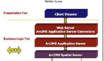 ArcIMS دارای معماری چند سطحی می باشد. ArcIMS از سه سطح که به عنوان سطح نمایش (Presentation tier ) سطح business logic و سطح ذخیره ای داده (Data Storage tier) تشکیل شده است .