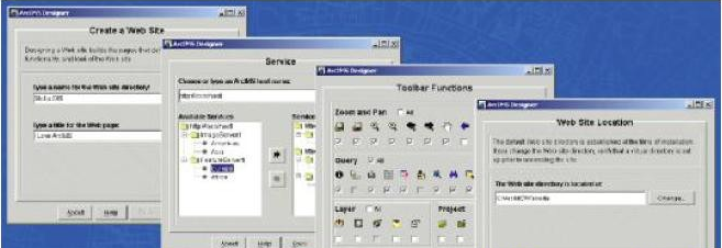 در این مرحله با استفاده از ArcIMS Designer می توان تعیین کرد که نمایشگر سرویس نقشه مورد نظر از چه نوع باشد. ArcIMS Designer سه نوع وب سایت با نمایشگرهای مختلف ایجاد می کند که شامل وب سایت با نمایشگر HTML و وب سایت با نمایشگر جاوا که خود دو نوع می باشد:Java Standard و Java Custom در این تحقیق وب سایت با نمایشگر HTML مدنظر می باشد. پس در ArcIMS Designer نمایشگر HTML راانتخاب می کنیم. ArcIMS Designer (شکل ۸) تمامی فایلها و ابزارهای اولیه وب سایت و نمایشگر را تولید می کند. که انتخاب هایی برای تعیین ابزارها، نمایش کلی نقشه نهایی، واحدها و … را اجازه می دهد. ArcIMS Designer سرویس های در دسترس بر روی سرور را نمایش می دهد و اجازه انتخاب هر یک را می دهد.