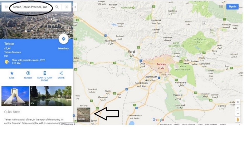 برای بدست آوردن آخرین ورژن تصاویر ماهواره ای گوگل بایستی در صفحه اینترنتی موتور جستجوی Google map ابتدا تصویر ماهواره ای یک منطقه ای، مثلا تهران را جستجو کنید سپس آیکن Satellite را فعال می کنید تا تصویر ماهواره ای منطقه مورد نظر را مشاهده کنید.