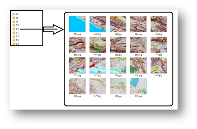 صبر می کنید تا فرایند تبدیل صورت پذیرد. سرانجام خروجی شما به صورت یک سری فولدر که تعداد طبقات zoom level شما را نشان میدهد و تعداد زیادی تصویر به صورت tile می باشد.