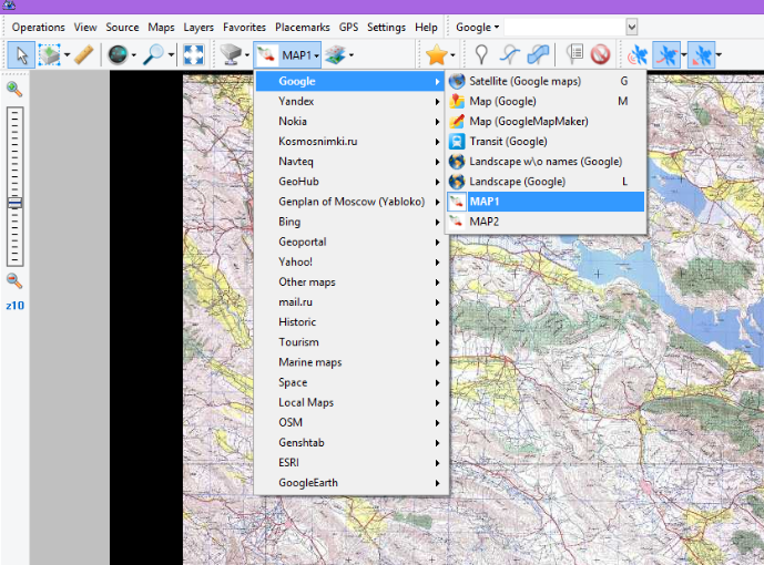 بعد از انجام مراحل بالا نرم افزار SAS.Planet را باز کرده و در قسمت Select base map نقشه Google را انتخاب می کنید و مشاهده می کنید که آیکون جدید نقشه دلخواه شما در آن قسمت جانمایی شده است و شما با انتخاب نقشه خود می توانید نقشه های 1.250000 و 1.50000 را نیز مشاهده کنید. همچنین می توانید تعداد نقشه های بیشتری را به نرم افزار اضافه کنید و از آن ها استفاده کنید.
