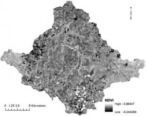با این حال، یک نسبت ساده زمانی که مخرج برابر با صفر باشد، ممکن است بی معنی شود. علاوه بر این، مقادیر نسبت باند معمولاً به طور قابل توجهی از یک منطقه به منطقه دیگر یا از فصلی به فصل دیگر متفاوت است، که مقایسه بین مناطق یا در طول زمان را نسبتاً دشوار می‌کند. بنابراین نسبتهای پیچیده تری شامل مجموع و تفاوت بین نوارهای طیفی به منظور غلبه بر این مشکلات ایجاد شده است. NDVI طبق رابطه 6-1 بیان شده، مثال است. به طور گسترده ای برای مطالعه پویایی پوشش گیاهی، ارزیابی توده بیولوژیکی، تخمین عملکرد محصول، نظارت بر خشکسالی و پیش بینی مناطق آتش سوزی خطرناک استفاده شده است. شکل 6-20 نقشه NDVI از Woori Yallock است که از تصاویر ETM+ گرفته شده است.