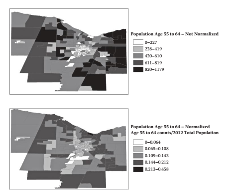 شکل 2–18: مقایسه تعداد داده های خام و دادههای ارایه شده با فرمت نرمال را نشان میدهد(تهیه نقشه توسط برایان توماسزوسکی).