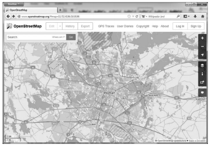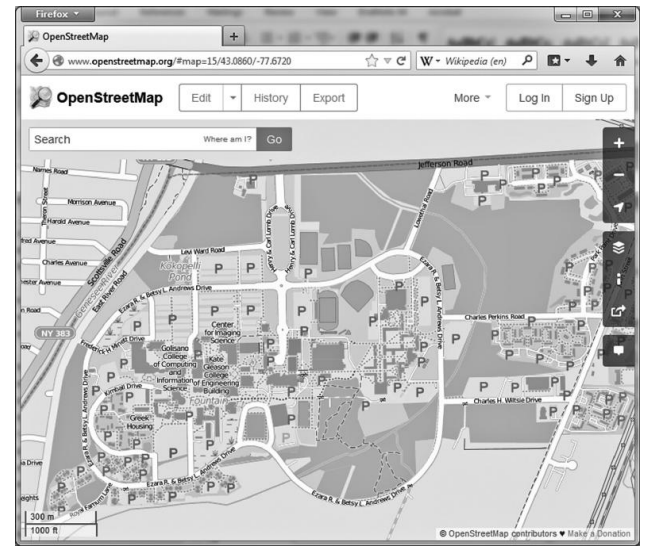 شکل 2-22: OpenStreetMap یک نقشه مرجع رایگان اوپن سورس در سراسر جهان. این نقشه چندین عوارض از جمله جادهها، آب، ساختمانها و اسم مکانها را نشان میدهد. سازندگان نقشه با استفاده از این نقشه میتوانند به سرعت نقشه عوارض موردنظر را بدون نیاز به ایجاد نقشه مرجع که کاری وقت گیر است تهیه کنند.