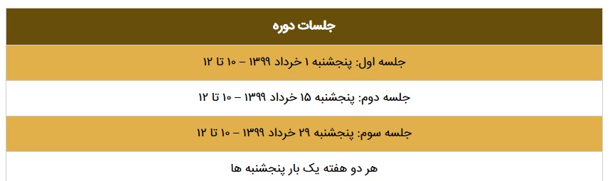 [su_service title=”زمان آغاز دوره: پنجشنبه ۱ خرداد ۱۳۹۹” icon=”icon: calendar-check-o” size=”24″][/su_service]