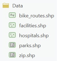 یک کار رایج در ArcGIS Pro کپی مجموعه داده ها از یک فرمت به فرمت دیگر است. به عنوان مثال، سناریویی را در نظر بگیرید که در آن چندین شکل فایل در یک پوشه دارید، و باید آن شکل فایلها را در یک مجموعه داده ویژگی جدید در یک پایگاه داده جغرافیایی فایل کپی کنید. علاوه بر این، شما می خواهید فقط شکل فایل های چند ضلعی را کپی کنید. شکل یک پوشه معمولی با چندین شکل فایل را نشان می دهد.