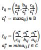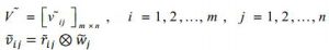 که در آن به ترتیب مجموعه B و Cیعنی مجموعه معیار هاي مثبت و منفی. بادر نظر گرفتن وزن هاي مختلف براي هر زیر معیار ، ماتریس تصمیم نرمال شده وزنی نیز از ضرب اهمیت وزن معیار ها در ماتریس صمیم فازي نرمال شده محاسبه می شود.ماتریس تصمیم نرمال شده وزنی به صورت رابطه زیر تعریف میشودکه درآن وزن معیار jام است.