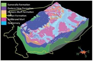 شکل 8-27 مدل سه بعدی آبخوان بارون داونز گرابن (ایجاد شده با استفاده از GOCAD ؛ با احترام سلطان نسرین نوری)