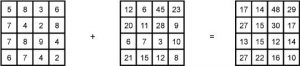 همپوشانی رستر چندین لایه رستری را در رستر واحد ترکیب میکند که در آن هر سلول از هر رستر به موقعیت جغرافیایی مشابهی اشاره میکند. بنابراین همپوشانی رستری مانند تقابل بردار شامل تقاطع هندسی نمیشود. این شامل عملیات روی مقادیر جداگانه سلولهای مربوطه در لایههای ورودی برای ایجاد لایه رستری جدید با مقادیر سلول جدید است. بر اساس ترکیبات منحصر به فرد مقادیر چند رستر ورودی میتوان به هر سلول در رستر خروجی مقداری اختصاص داد. معمولاً از همپوشانی رستری برای ترکیب ریاضی رسترهای اختصاص داده شده با مقادیر سلول عددی برای محاسبه مقدار جدید برای هر سلول در رستر خروجی استفاده میشود. شکل 4-17 نمونه ای از همپوشانی رستری را با افزودن نشان میدهد. دو رستر ورودی با هم جمع میشوند تا رستر خروجی با مقادیر هر سلول جمع شوند.