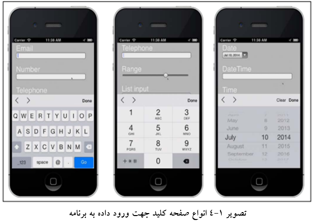 4- تفاوتهایی بین انواع سازندگان دستگاههای موبایلApple, Google, blackberry و windows وجود دارند.