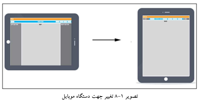 3- بعد از اینکه موبایل چرخش داده شد، جهت عمودی یا افقی صفحه شناسایی شود. این موضوع تاثیر مستقیمی در طرحبندی رابط کاربری برنامه دارد. اینکه چه اجزائی در رابط کاربری وجود دارد و این اجزاء نمایشی موجود در رابط کاربری برنامه با چرخش صفحه چگونه خود را منطبق کنند، از موارد مهم است.