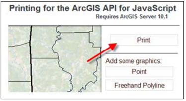 این ویجت یکی از ابزارهای بسیار کاربردی است. این ویجت نقشههای موجود در اپلیکیشن را چاپ میکند. این ویجت یک سبک پیش فرض دارد. هم چنین میتواند از سبک سفارشی کاربر استفاده کند. این ویجت از ArcGIS Server 10.1 یا نسخهی بالاتر استفاده میکند. به تصویر زیر دقت کنید: