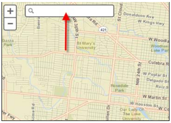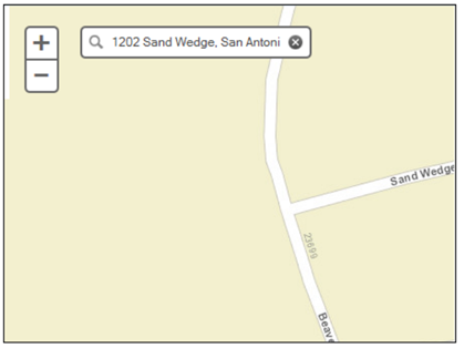 9- آدرس 1202 Sand Wedge را به عنوان مثال در کادر متنی آدرس وارد کنید. ویژگی Autocompletion به طور خودکار آدرس مورد نظر ما را تکمیل میکند. هنگامی که آدرسها در لیست ظاهر میشوند، آدرس مورد نظرتان را انتخاب کنید. ویجت آدرس را مکان یابی میکند و نقشه در مکانهای متناظر با آدرس زوم میشود. مطابق تصویر زیر نقشه بر روی خیابانهای با نام Sand Wedge زوم شده است: