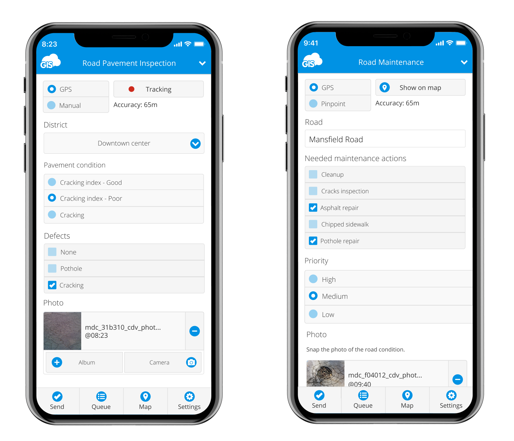 این عملکرد همچنین می تواند به عنوان اثبات کار تکمیل شده ، عکس و رسانه باشد. این در کاهش مسئولیت شرکت در صورت حوادث آینده بسیار مهم است . در اینجا چند نمونه عالی از مدیریت و تعمیر و نگهداری Roadworks با برنامه های GIS Cloud آورده شده است.