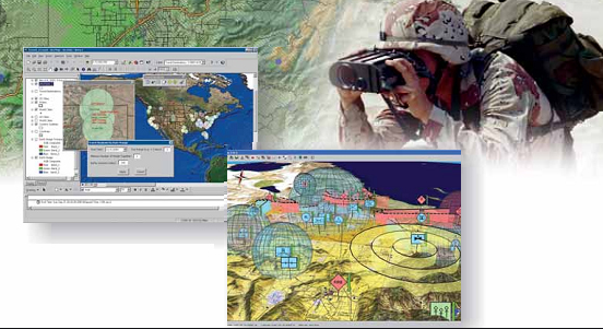 سیستم تحلیل فرکانس ها و مناطق تحت پوشش رادار برای مکان یابی آنتن های رادیوئی و رادارها، تحلیل مناطق – تحت پوشش، تحلیل پخش امواج، زاغه مهمات و موشک ها، سیستم مختصات پروازی و غیره، می توان از قابلیت های سیستم GIS برای تجزیه و تحلیل و نمایش استفاده کرد.