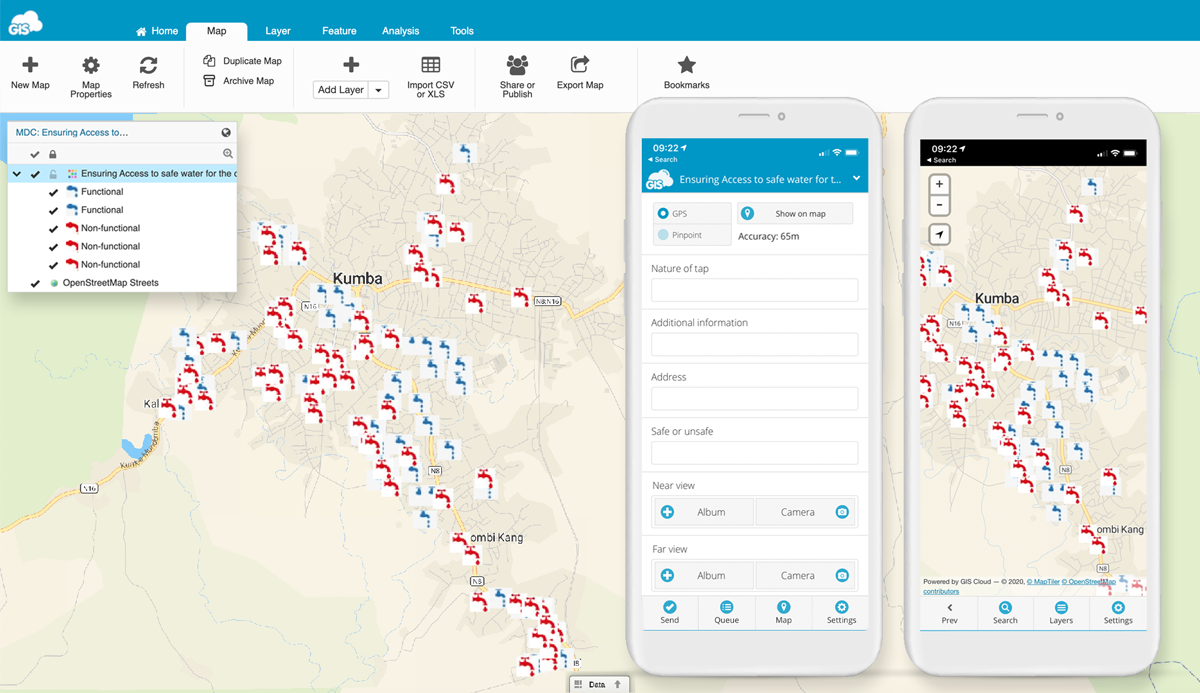 Tabong فیلیپ Nucha سایت، مدیر پروژه در نسل جدید برای مسیح (NG4C) – سازمان غیردولتی از KUMBA، کامرون، تصمیم گرفت تا برای ما اعمال می شود GIS مسابقه روز در سال 2019 برای کمک به جامعه خود. هدف اصلی آنها نقشه برداری از نقاط آب موجود و دسترسی به آب در شهر کومبا ، کامرون و برخورد با منابع آب دررفته و شیرهای غیرعملی ، برای اطمینان از دسترسی به منابع آب سالم بود. ما متوجه نیاز شدید پروژه های پایدار در بخش آب تمیز و فاضلاب در سراسر جهان شده ایم و تصمیم گرفته ایم تا سهم خود را در این زمینه انجام دهیم ، بنابراین ما با اشتراک رایگان GIS Cloud و پشتیبانی خود به این پروژه ها اعطا کردیم. ما پروژه وی را در میان پروژه های دیگر انتخاب کردیم ، زیرا NG4C یک استراتژی نقشه کشی واضح در مورد نحوه دسترسی به آب آشامیدنی تمیز داشت که تأثیر زیادی بر جامعه محلی خواهد داشت.