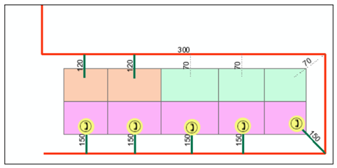 ArcMap را بازکنید و روی Add Data بزنید. در پنجره ظاهر شده روی اتصال سایت سرور بزنید و سرویسهای نقشهای Electric، Parcels و Outage_Scenario_2 را به نقشه اضافه کنید. روی Full Extent بزنید. لایههای Outages، Electricity و Parcels را به ترتیب در زیر هم دراگ کنید. طبق گزارشات قطعی OMS، واضح است که یک عامل ناشناخته، برق پنج مجتمع تجاری نزدیک هم را قطع کرده است و برق منازل مشکلی ندارد. شکل زیر قطعی را نشان میدهد.