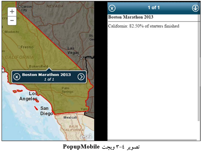 میخواهیم گام بلندتری از این مثال برداریم. PopupTemplate انعطاف زیادی دارد مثلاً میتوان با استفاده از PopupTemplate به MobilePopUp نمودار اضافه کرد. تصویر زیر را ببینید: