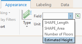 13. در قسمت کشویی Field در کنار Type، Estimated Height را از لیست ظاهر شده انتخاب کنید، همانطور که در تصویر زیر نشان داده شده است. این برآورد ارتفاع هر ساختمان است: